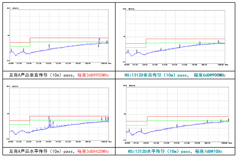如图所见:NSI1312x EMI 的性能无论在垂直传导还是水平传导都显著呈现其核心优势。
