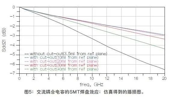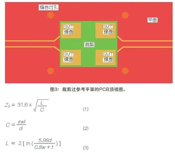 本文的分析证明,裁剪掉SMT焊盘正下方的参考平面区域可以减小阻抗失配,增加传输线的带宽。