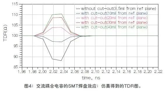 阻抗失配现象在交流耦合(又称隔直)电容的SMT焊盘、板到板连接器以及电缆到板连接器(如SMA)处经常会遇到。