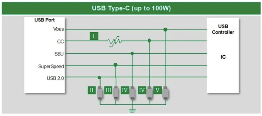 图3:USB-C接口ESD防护解决方案(图源:Littelfuse)