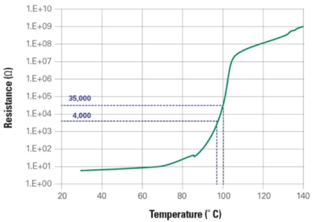 图9:setP™温度指示器的电阻-温度曲线(图源:Littelfuse)