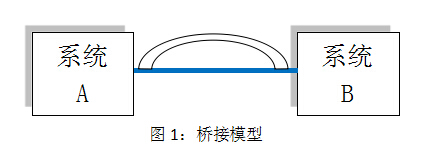何谓桥接?维基百科中的解释是关于通讯网络协议的。桥接是指连接两个不同系统之间的桥梁,英文简称“bridged”,这个系统大到宇宙空间,小到微观空间个体。在电子领域更可以直接指不同的工作系统,不同的单个器件。简化模型如图1。