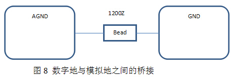 传统的硬件中都会要求模拟地与数字地之间需要严格分割开来,做到绝对的隔离,原理上讲,是担心数字地的背景噪声串扰到模拟地,引起模拟量的失真,从而无法采集模拟信号,另一方面高频信号串扰到模拟区,也会引起信号的失真。